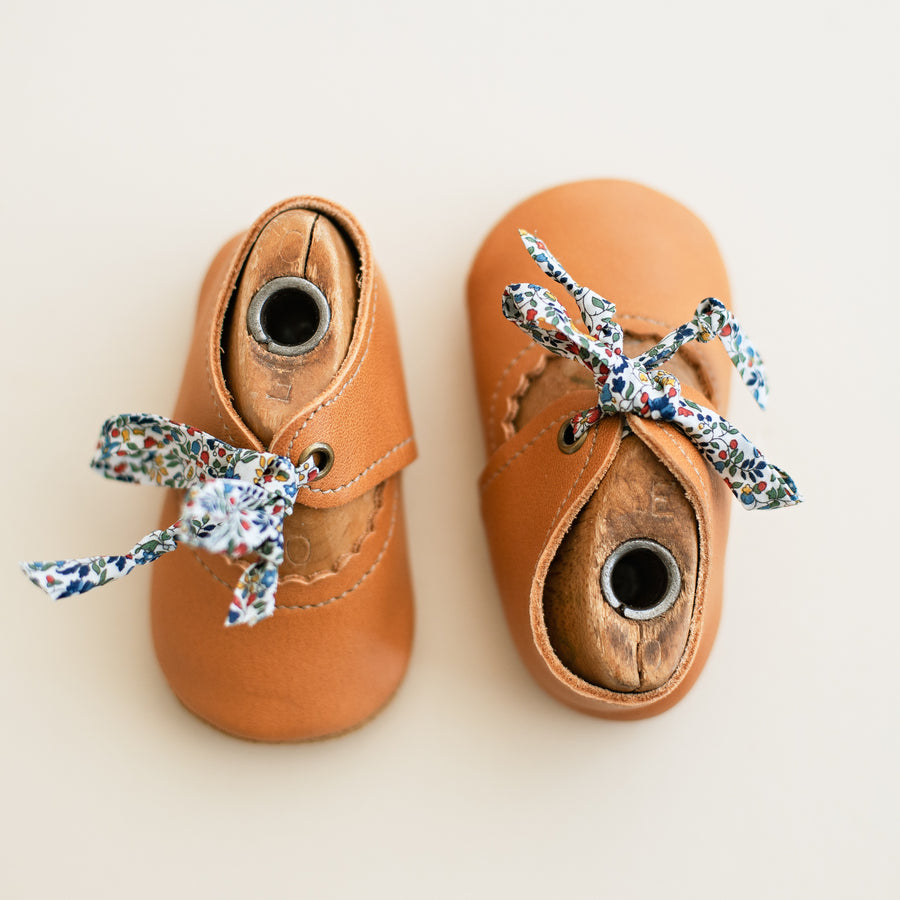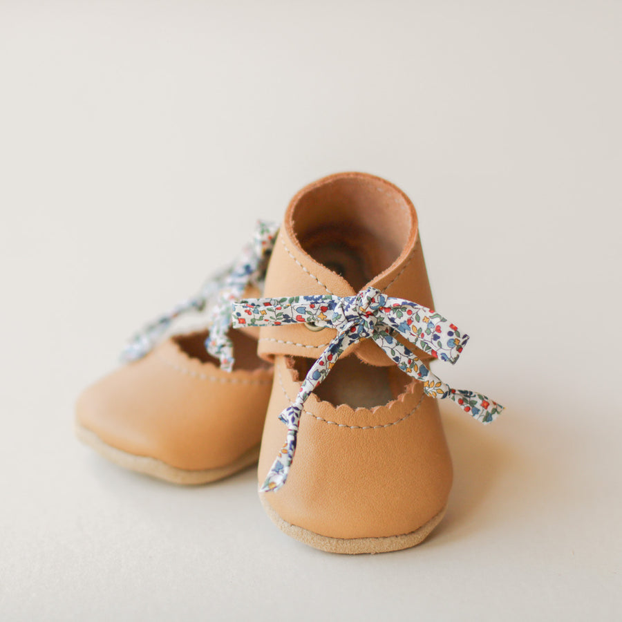 These sweet Bella Janes! The blush leather is soft, yet durable and is perfect for family photoshoots and all-around cute fun. They are soft (without structure) and bend with every move the little feet will make. The sole is a sand suede.