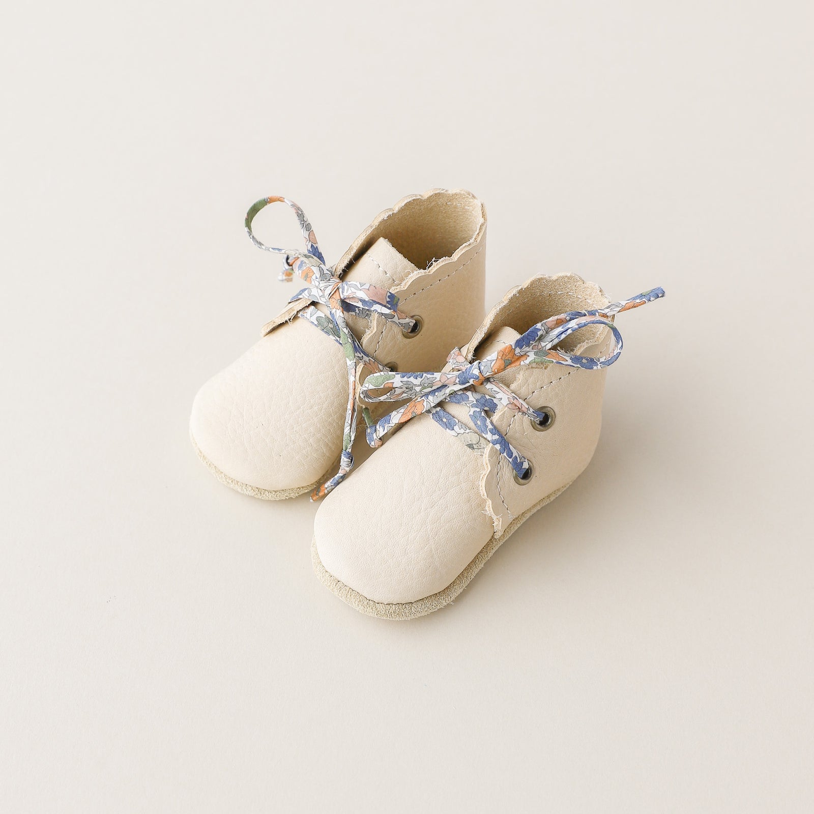 Sun & Lace offers handcrafted leather soft sole baby shoes, including our signature Bella Janes, baby boots, slip-on crib shoes, baby Mary Janes, and little Oxfords. The neutral colors pair well with baby special occasion outfits. The soft soles are a great option for daycare shoes.
