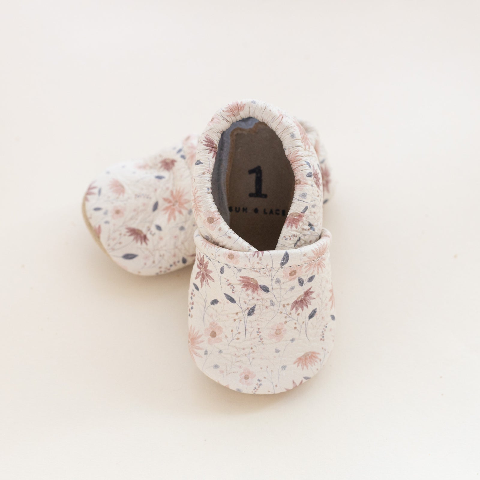 Crafted by a small team of women in our Wisconsin studio,  each pair supports natural foot growth and movement, making them ideal for pre-walkers, cruisers, and early walkers. The lightweight soft sole promotes sensory feedback while protecting tiny toes from indoor surfaces.